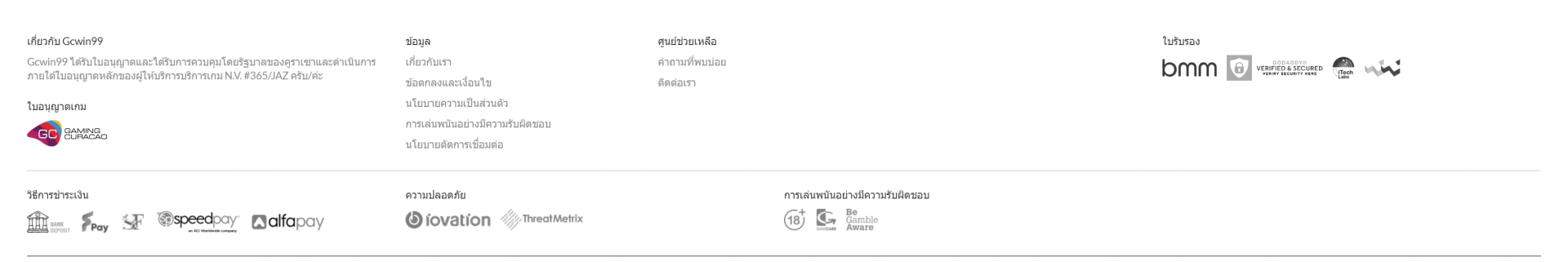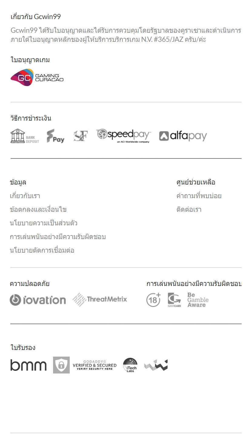 Gcwin99 ได้รับใบอนุญาตและได้รับการควบคุมโดยรัฐบาลของคูราเซา และดำเนินการภายใต้ใบอนุญาตหลักของผู้ให้บริการGCWIN99 นี่คือจุดเริ่มต้นของความน่าเชื่อถือที่เราต้องการย้ำเมื่อคุณกำลังมองหาแพลตฟอร์มเดิมพันออนไลน์ที่ไว้ใจได้ สำหรับนักเดิมพันที่ตั้งใจจะเล่นอย่างจริงจัง ความชัดเจนด้านกฎหมายและการกำกับดูแลเป็นสิ่งสำคัญมาก เพราะมันหมายถึงมาตรฐานการให้บริการและความปลอดภัยของผู้เล่น
